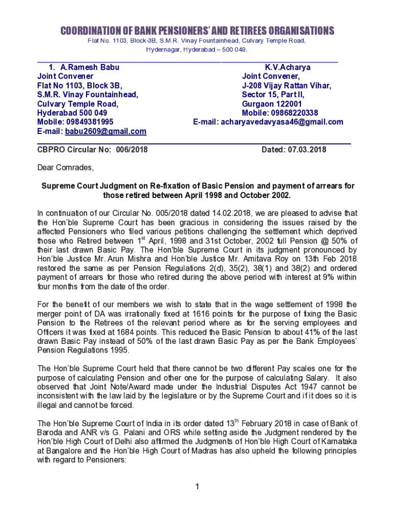 Get the free ALL INDIA BANK PENSIONERS' & RETIREES' CONFEDERATION