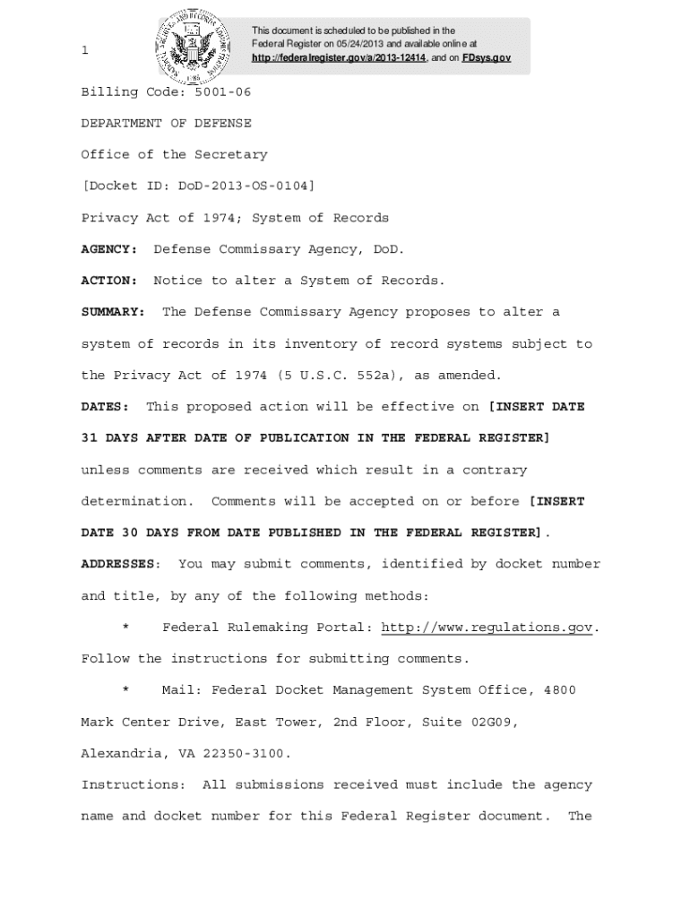 This document is scheduled to be published in the Federal Register on 05/24/2013 and available online at http://federalregister.gov/a/201312414, and on FDsys.gov1 Billing Code: 500106 DEPARTMENT OF