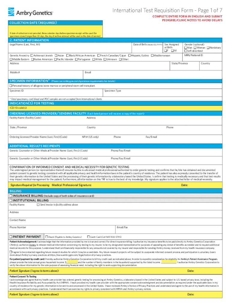 International Test Requisition Form Page 1 of 7 COMPLETE ENTIRE FORM IN ENGLISH AND SUBMIT PEDIGREE/CLINIC NOTES TO AVOID DELAYScollection date (required) If date of collection is not provided, three