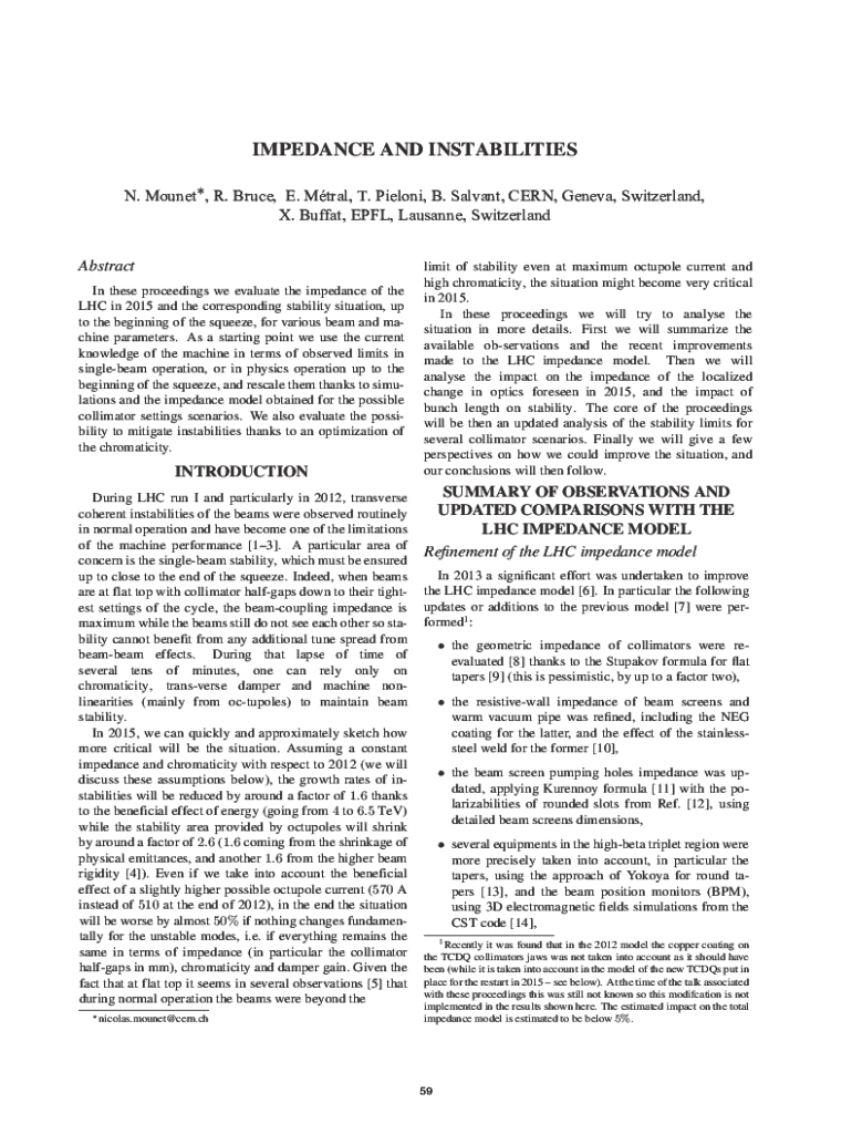 IMPEDANCE AND INSTABILITIES IMPEDANCEANDINSTABILITIES 5%UXFH(0pWUDO73LHORQL%6DOYDQW&(51*HQHYD6ZLW]HUODQG 10RXQHW N. Mounet*, R. Bruce, E. Mtral, T. Pieloni, B. Salvant, CERN, Geneva, Switzerland,