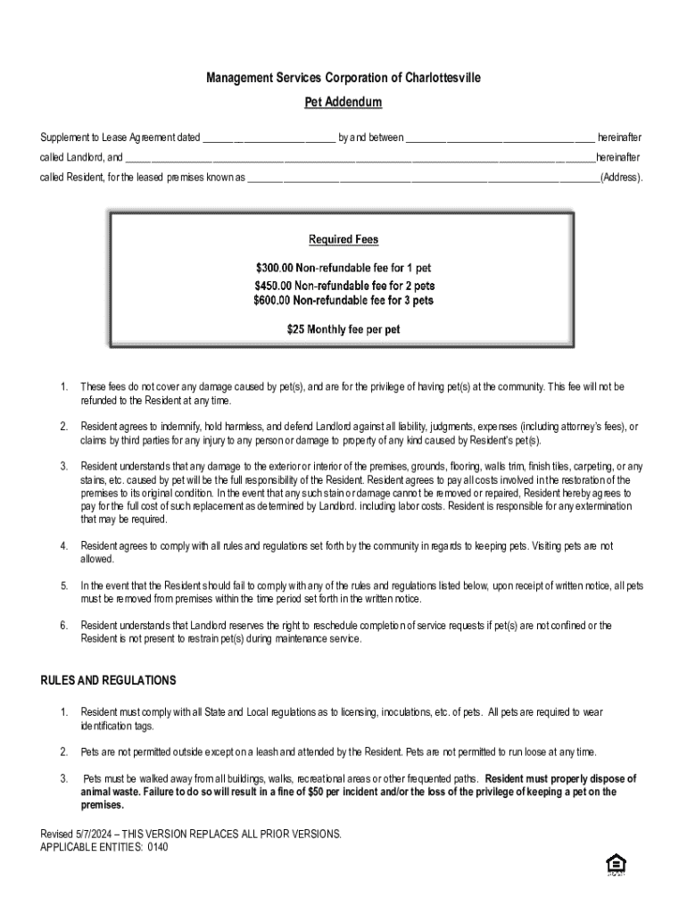 Get the free Pet Addendum