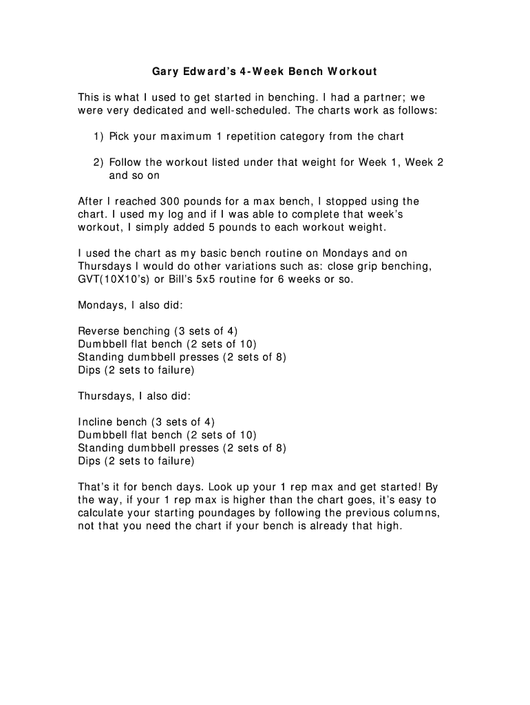 Fill out your gary edwards 4-week bench online with pdfFiller!
