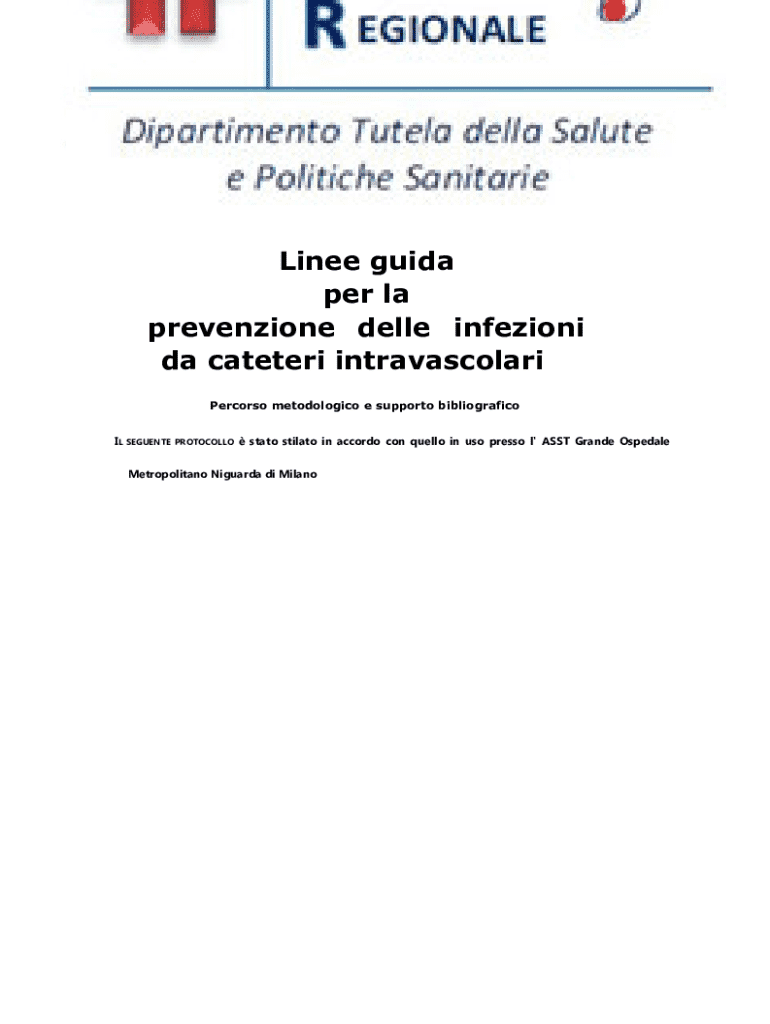 Linee guida per la prevenzione delle infezioni da cateteri intravascolari Percorso metodologico e supporto bibliografico IL SEGUENTE PROTOCOLLO stato stilato in accordo con quello in uso presso l\'