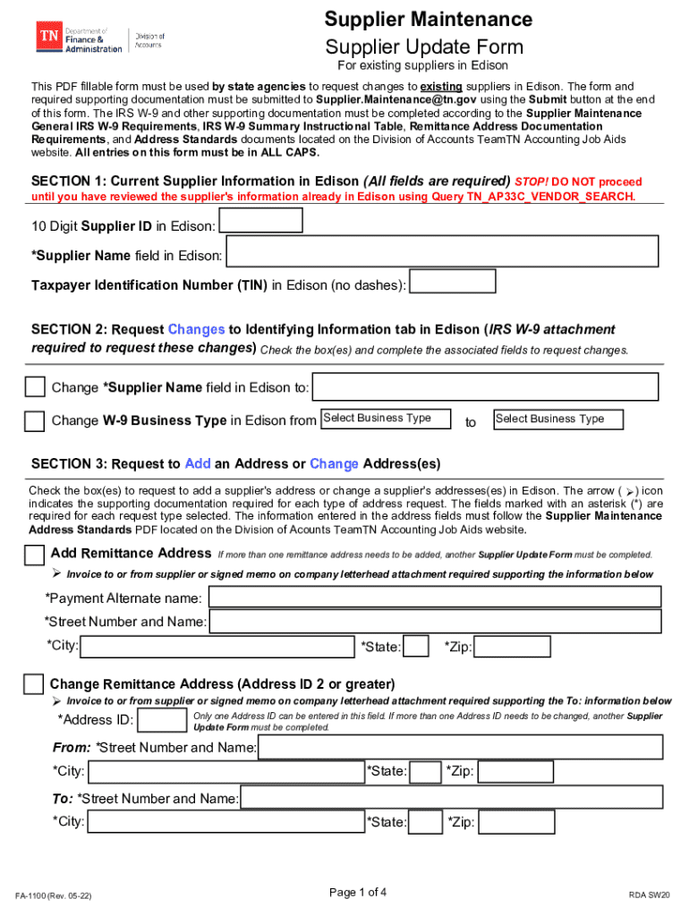 Suppliers who wish to maintain or establish a business relationship with a company are typically required to file the supplier update form.
