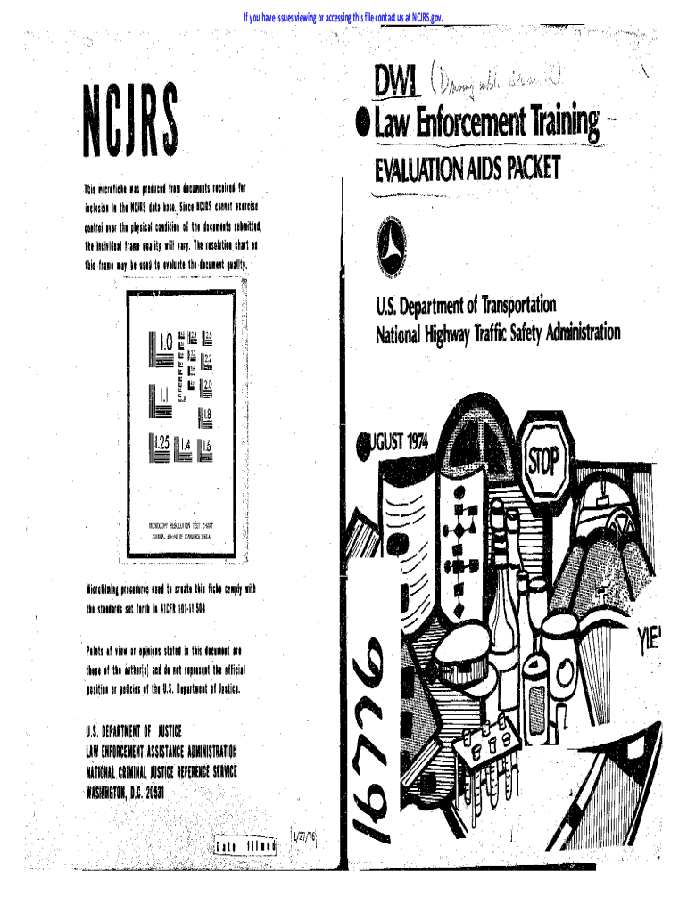 This document provides a comprehensive overview of the DWI Law Enforcement Training Course, including evaluation methods, instructional aids, various training materials, and the effectiveness of training in improving alcohol enforcement activities by law enforcement officers. It contains data about the course components, participant evaluations, instructional strategies, and learning activities aimed at enhancing skills relevant to DWI enforcement.