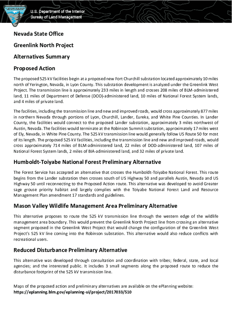 Get the free Nevada State Office Greenlink North Project Alternatives ...