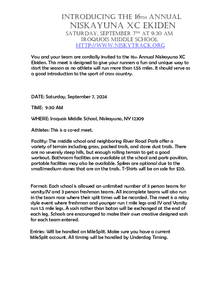 Get the free Niskayuna Xc Ekiden Registration