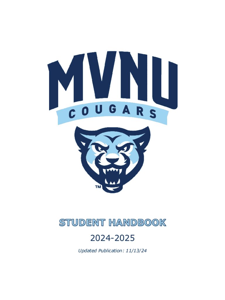 20242025 Updated Publication: 11/13/24MOUNT VERNON NAZARENE UNIVERSITY1STUDENT HANDBOOK20242025WELCOME FROM STUDENT LIFEMVNU Students, I am thrilled to embark on this year with you and look forward