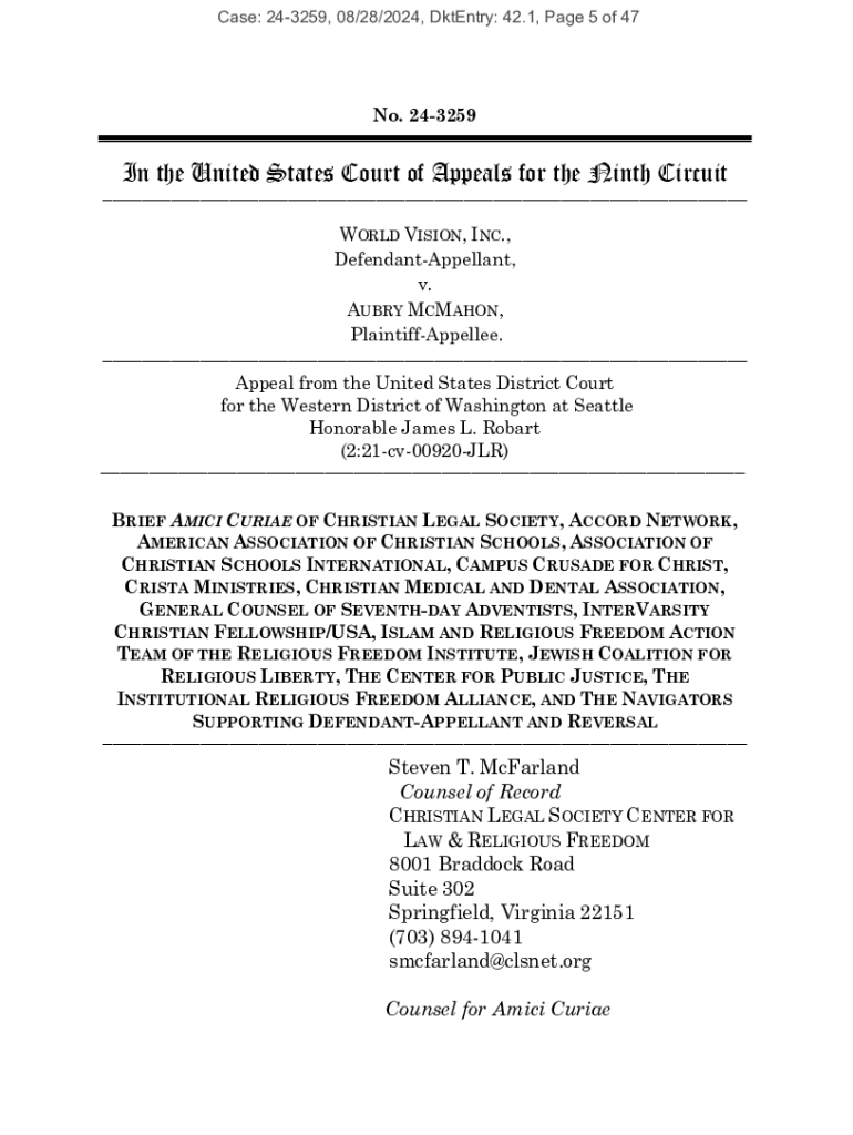 Case: 243259, 08/28/2024, DktEntry: 42.1, Page 5 of 47No. 243259In the United States Court of Appeals for the Ninth Circuit___ WORLD VISION, INC., DefendantAppellant, v. AUBRY MCMAHON, PlaintiffAppellee.___