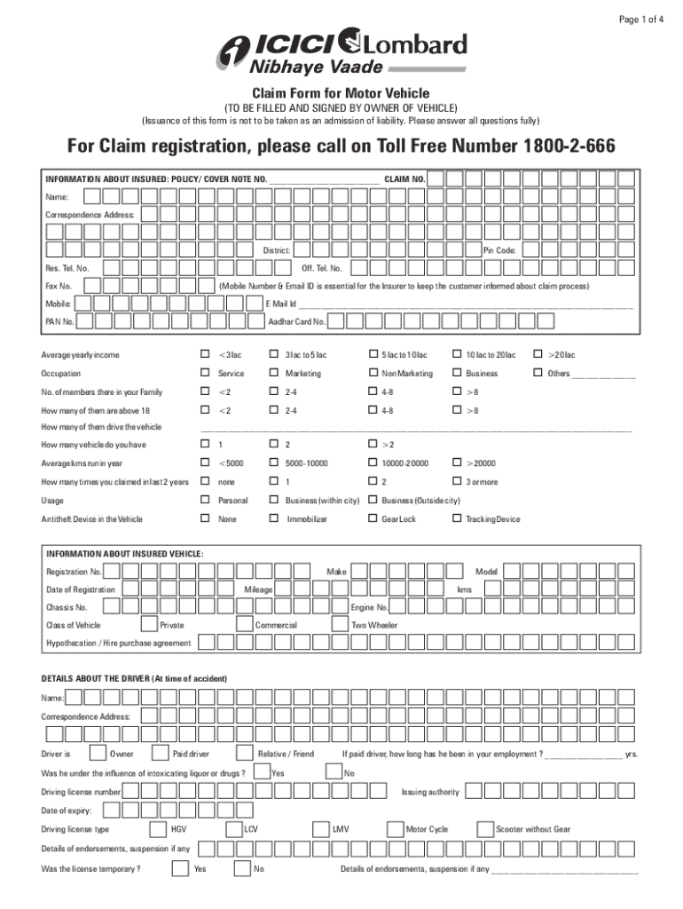 The purpose of the claim form for motor is to formally notify the insurance company of an incident and to initiate the process for compensation for damages or losses incurred.