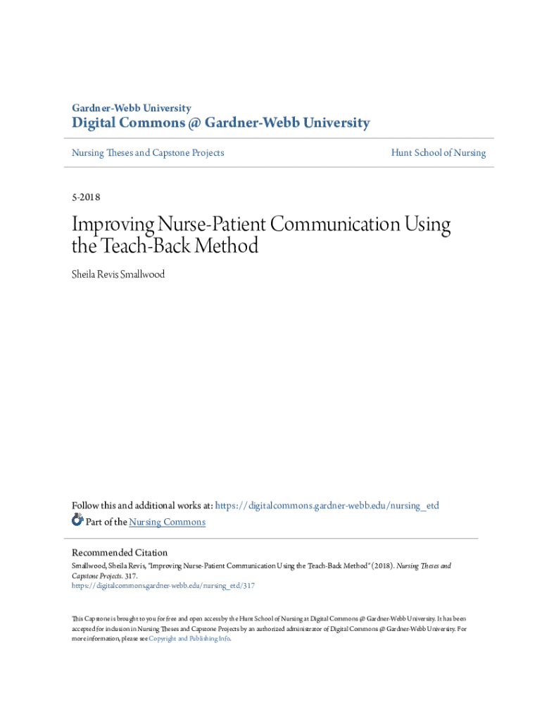 GardnerWebb UniversityDigital Commons @ GardnerWebb University Nursing Theses and Capstone ProjectsHunt School of Nursing52018Improving NursePatient Communication Using the TeachBack Method Sheila
