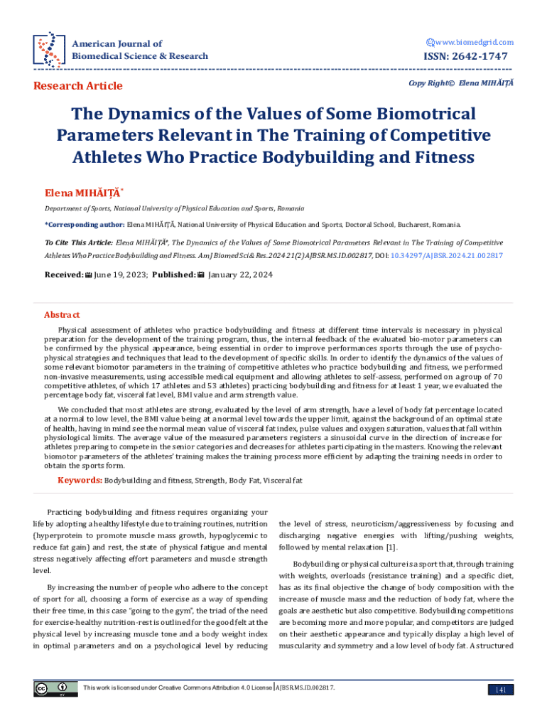 American Journal of Biomedical Science & Researchwww.biomedgrid.comISSN: 26421747 Research ArticleCopy Right Elena MIHIThe Dynamics of the Values of Some Biomotrical Parameters Relevant in The Training