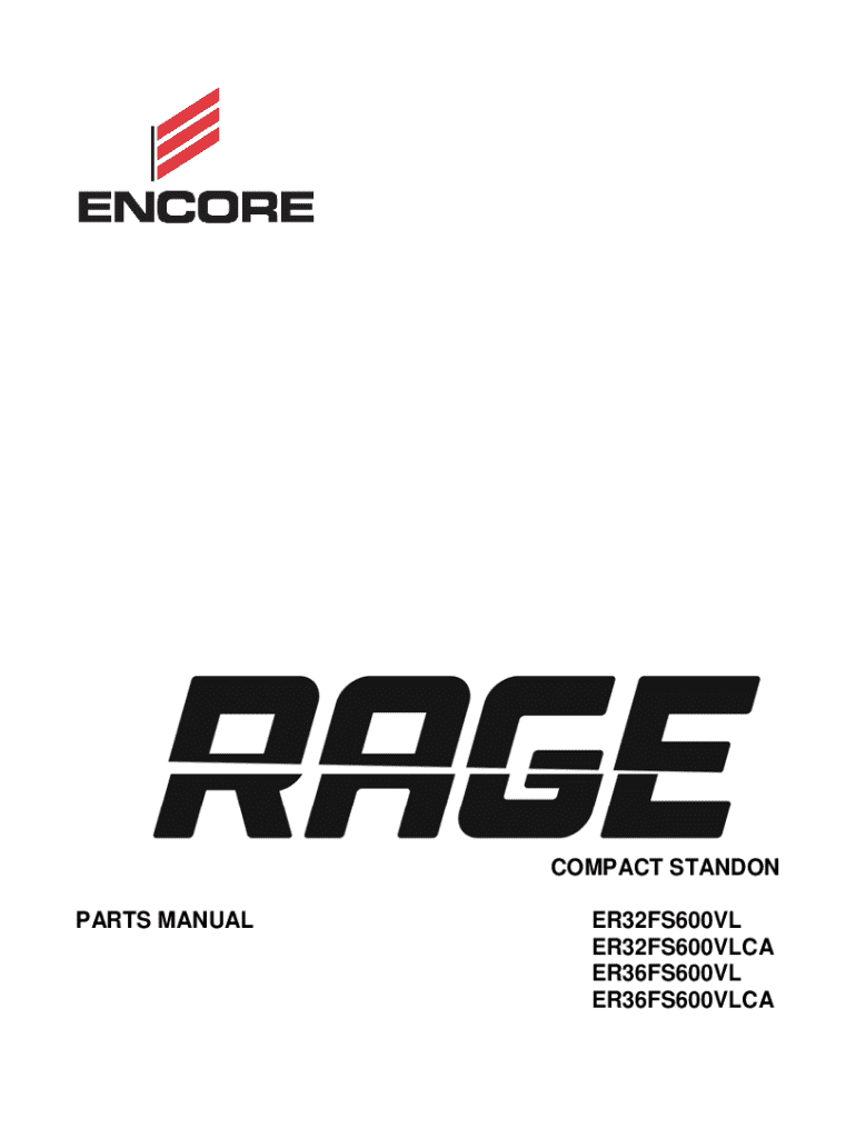 COMPACT STANDON PARTS MANUALER32FS600VL ER32FS600VLCA ER36FS600VL ER36FS600VLCA2ENCORE MANUFACTURING A DIVISION OF WORLDLAWN POWER EQUIPMENT, INC.ENCOREEQUIPMENT.COM401 N. COMMERCE STREET BEATRICE,