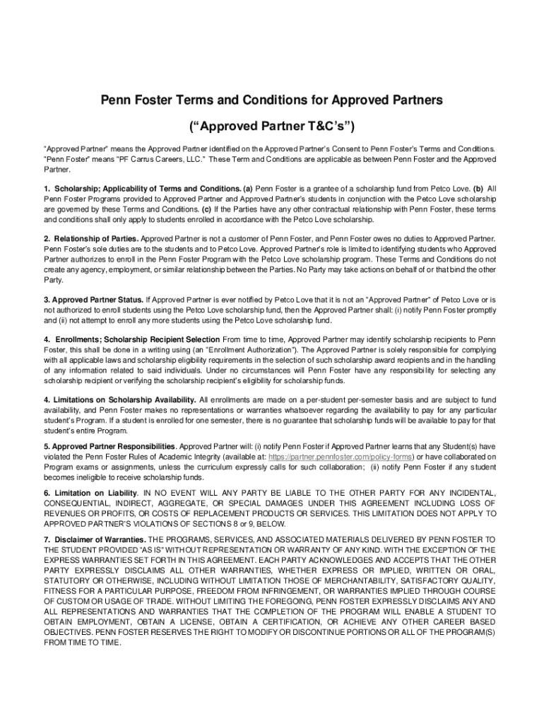 Get the free Appendix D Penn Foster Terms and Conditions for ...