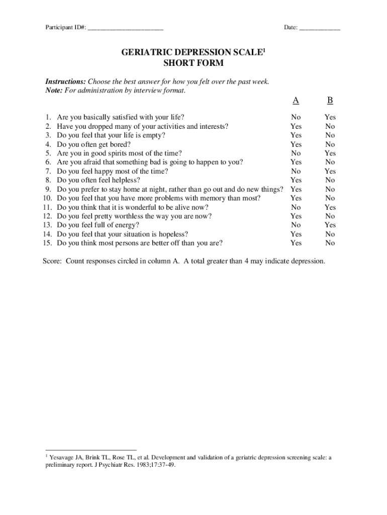 How to fill out geriatric depression scaleshort form