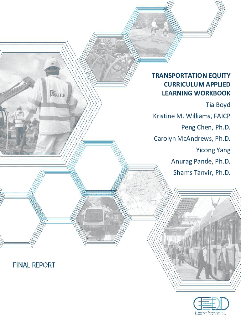 This workbook serves as a companion to the Transportation Equity Curriculum Guidance Document, enhancing student understanding and skills through various assignments focused on equity in transportation. It emphasizes applied and experiential learning strategies to address learning objectives within the curriculum.
