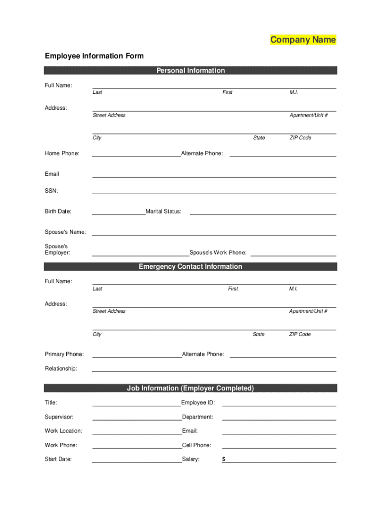 Get the free Employee Information Form