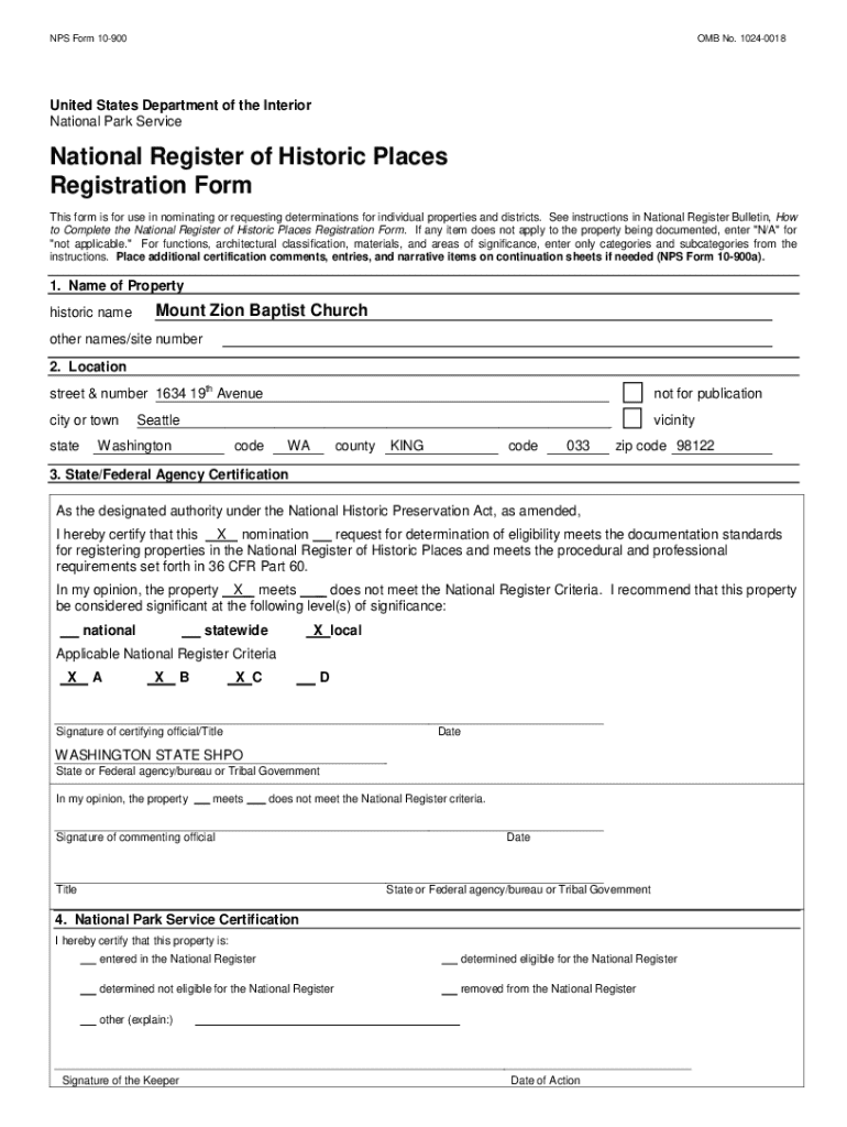 NPS Form 10900OMB No. 10240018United States Department of the Interior National Park ServiceNational Register of Historic Places Registration Form This form is for use in nominating or requesting