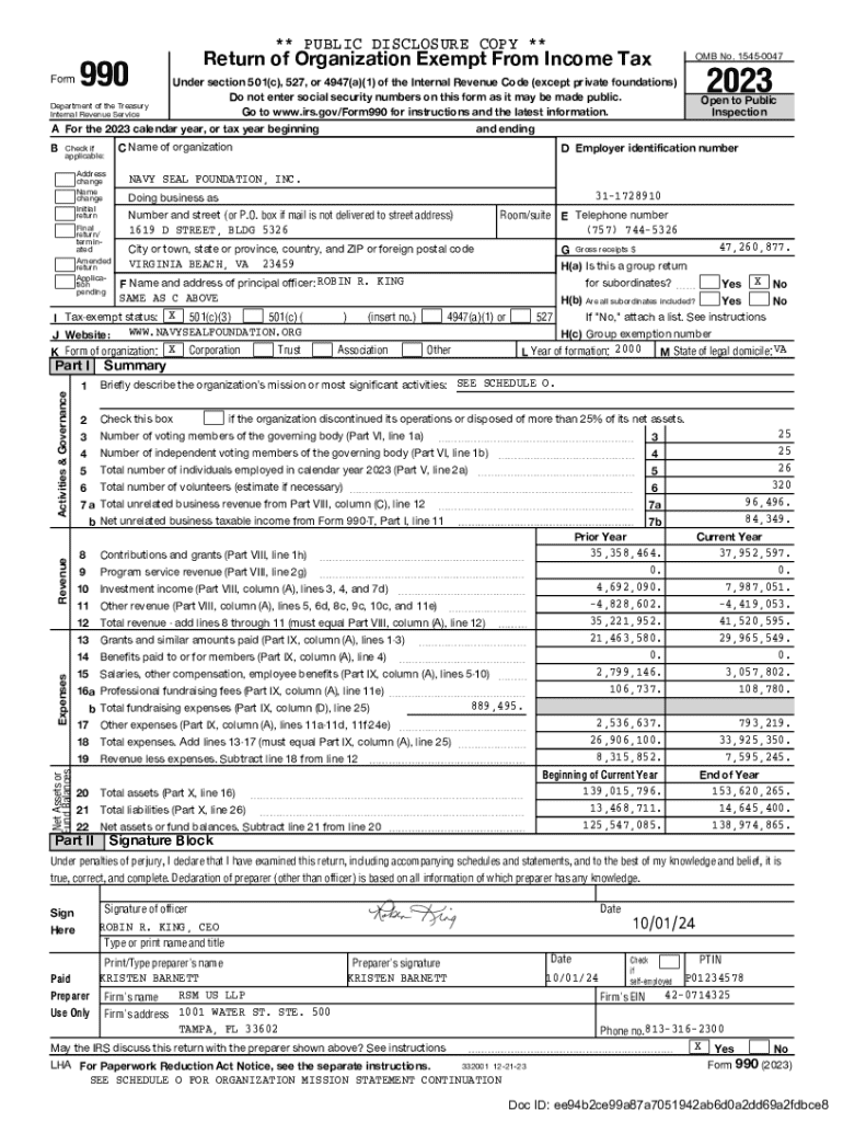 Filling out the Navy SEAL Foundation Inc. forms typically involves completing the IRS Form 990 or 990-EZ, depending on the organization's revenue, providing detailed financial statements, and submitting supporting documentation for revenue and expenses.