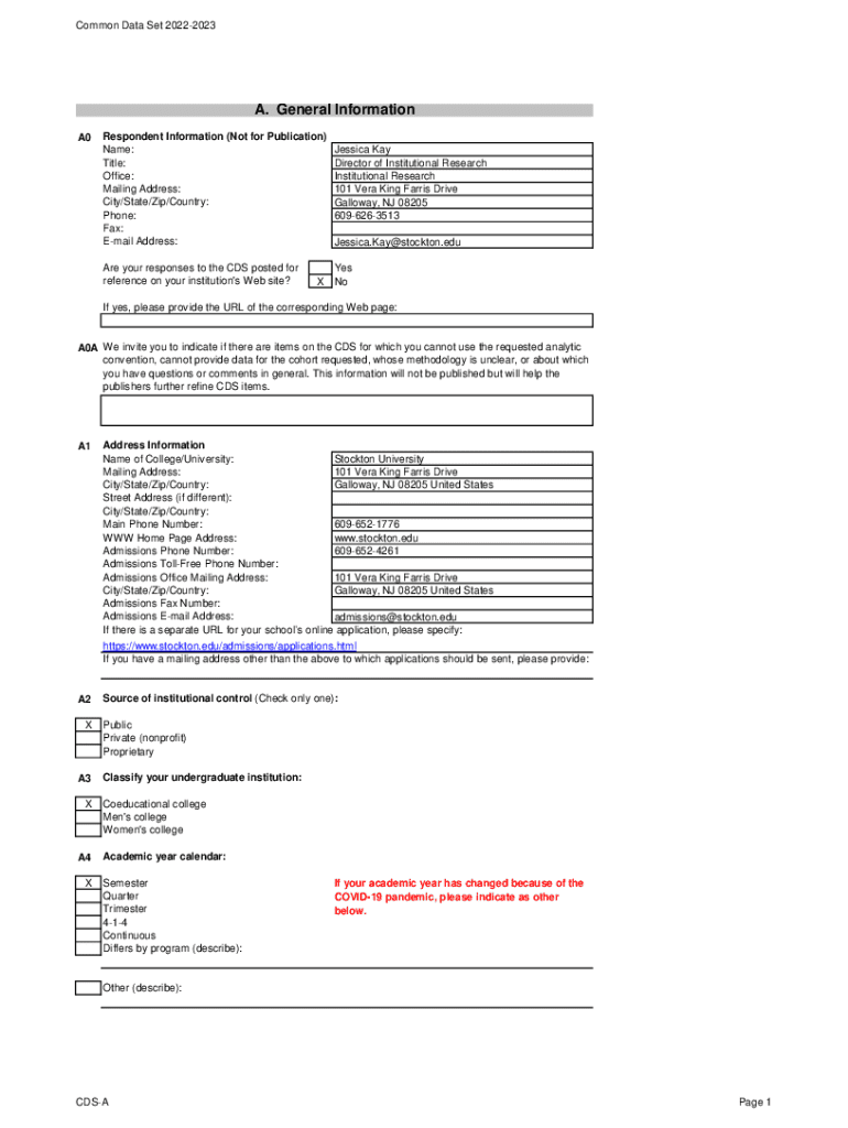 Get the free Common Data Set 2022-2023