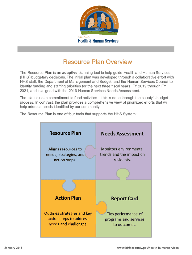 Resource Plan Overview The Resource Plan is an adaptive planning tool to help guide Health and Human Services (HHS) budgetary decisions. The initial plan was developed through a collaborative effort