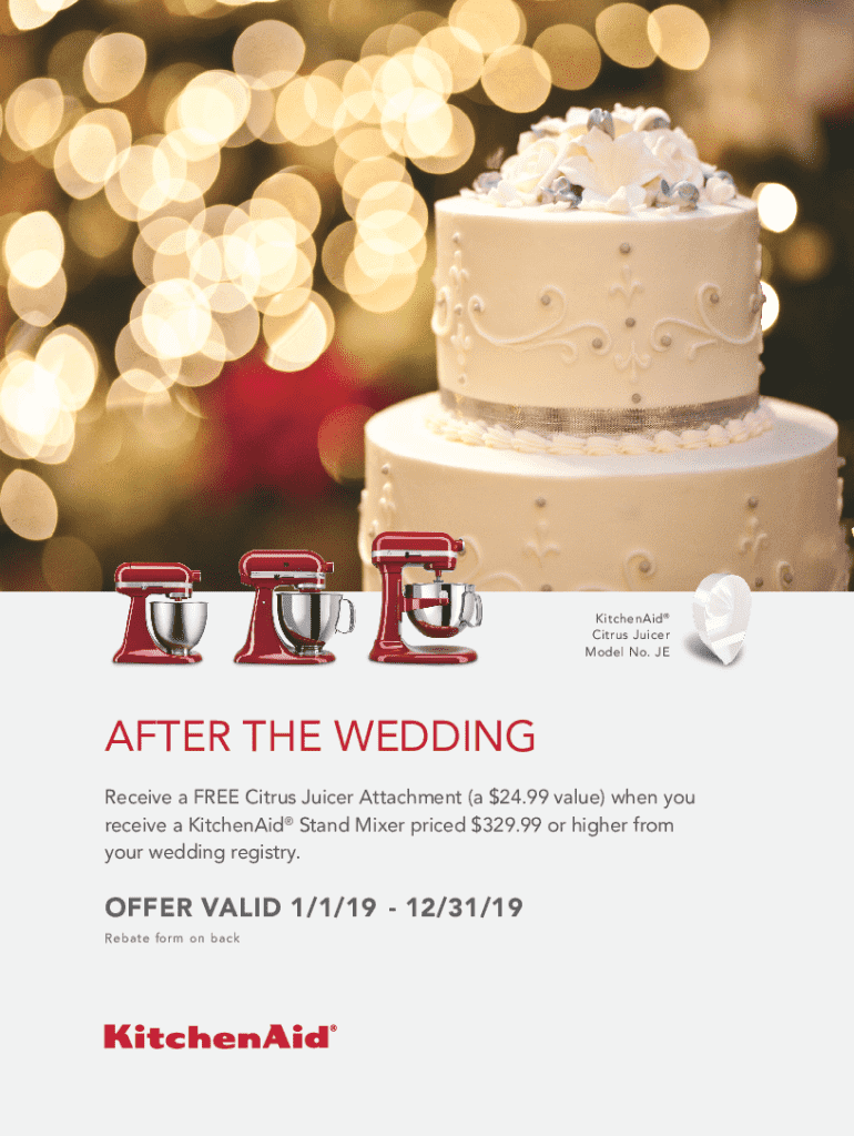 KitchenAid Citrus Juicer Model No. JEAFTER THE WEDDING Receive a FREE Citrus Juicer Attachment (a $24.99 value) when you receive a KitchenAid Stand Mixer priced $329.99 or higher from your wedding
