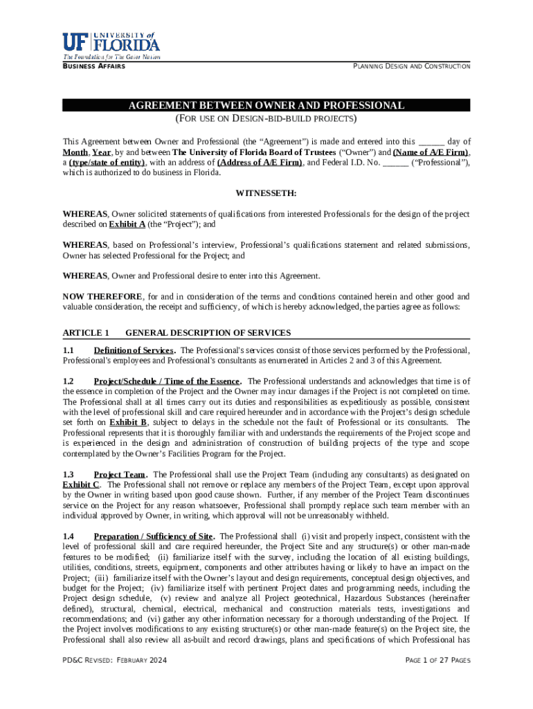 The Design Professional ContractGeorgia State Financing and ... is a fillable form in MS Word extension which can be completed and signed for specified purpose. Next, it is provided to the exact addressee to provide specific details of any kinds. The completion and signing is able or with a suitable application e. g. PDFfiller. These services help to send in any PDF or Word file without printing out. It also allows you to edit it depending on your needs and put a legal electronic signature. Upon finishing, you send the Design Professional ContractGeorgia State Financing and ... to the respective recipient or several of them by email and even fax. PDFfiller includes a feature and options that make your Word form printable. It offers various options when printing out. It doesn't matter how you will send a form - in hard copy or by email - it will always look neat and organized. To not to create a new file from the beginning every time, make the original Word file into a template. Later, you will have an editable sample.