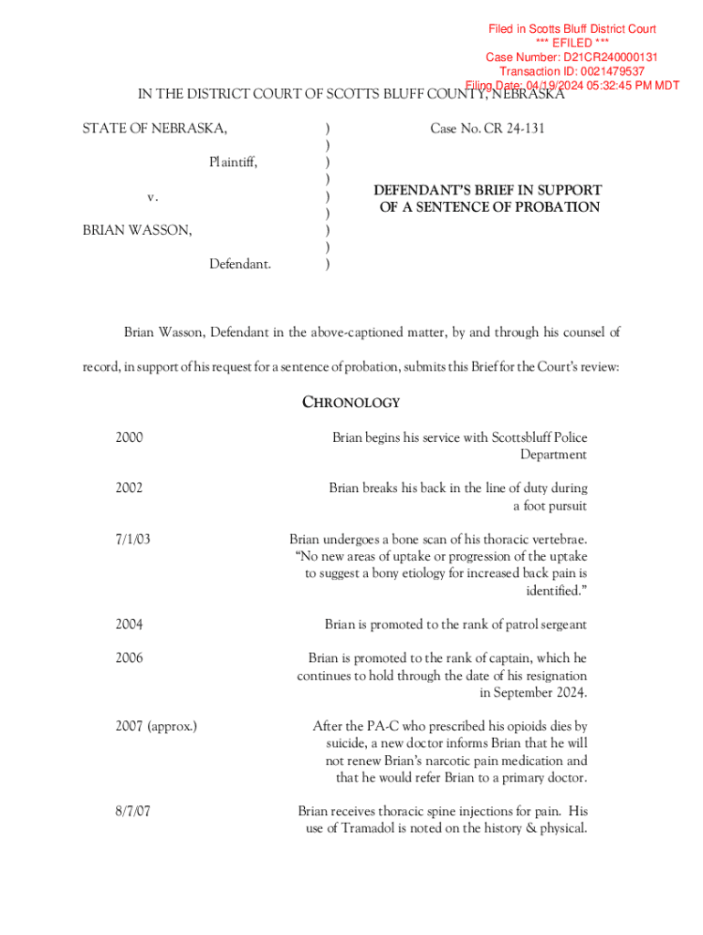 Filed in Scotts Bluff District Court *** EFILED *** Case Number: D21CR240000131 Transaction ID: 0021479537 Filing Date: 04/19/2024 05:32:45 PM MDTIN THE DISTRICT COURT OF SCOTTS BLUFF COUNTY, NEBRASKA