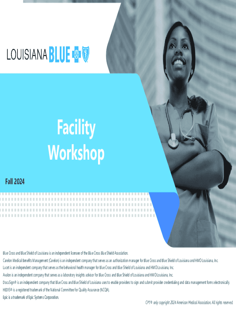 Facility Workshop Fall 2024Blue Cross and Blue Shield of Louisiana is an independent licensee of the Blue Cross Blue Shield Association.Carelon Medical Benefits Management (Carelon) is an independent