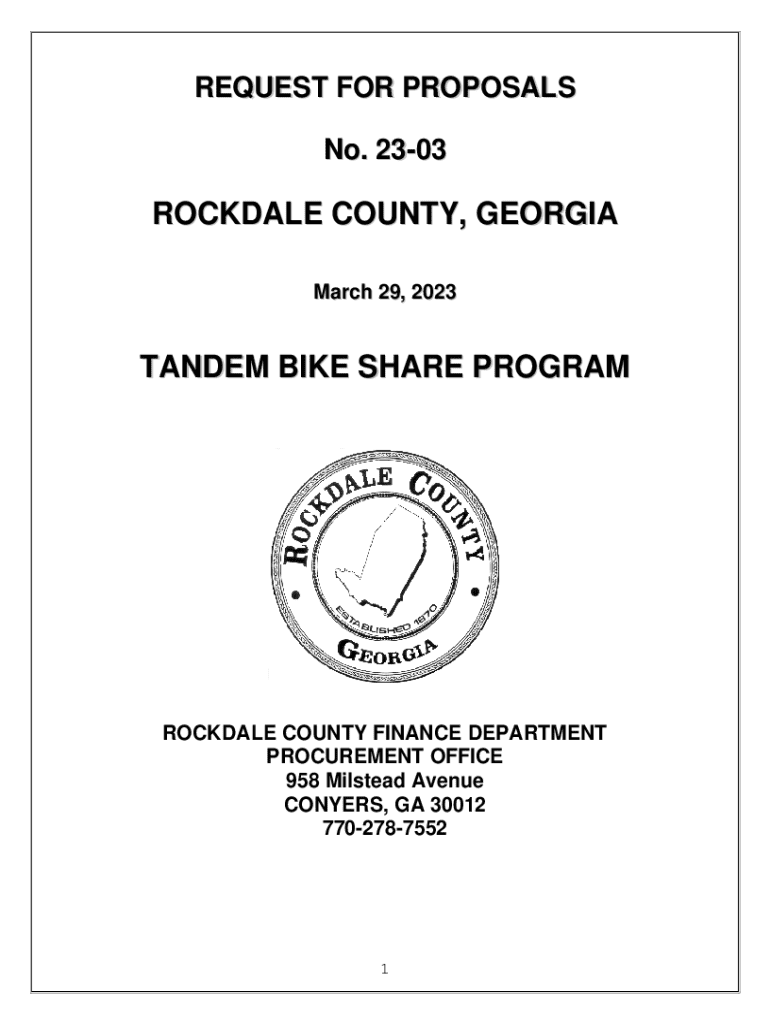 Rockdale County is seeking competitive sealed proposals for the development and implementation of a neighborhood-based regional pedal bike share program aimed at providing alternative mobility options for residents and promoting biking among various demographics. The program will establish bike stations and include specifications for bike features, maintenance, customer support, and marketing initiatives.