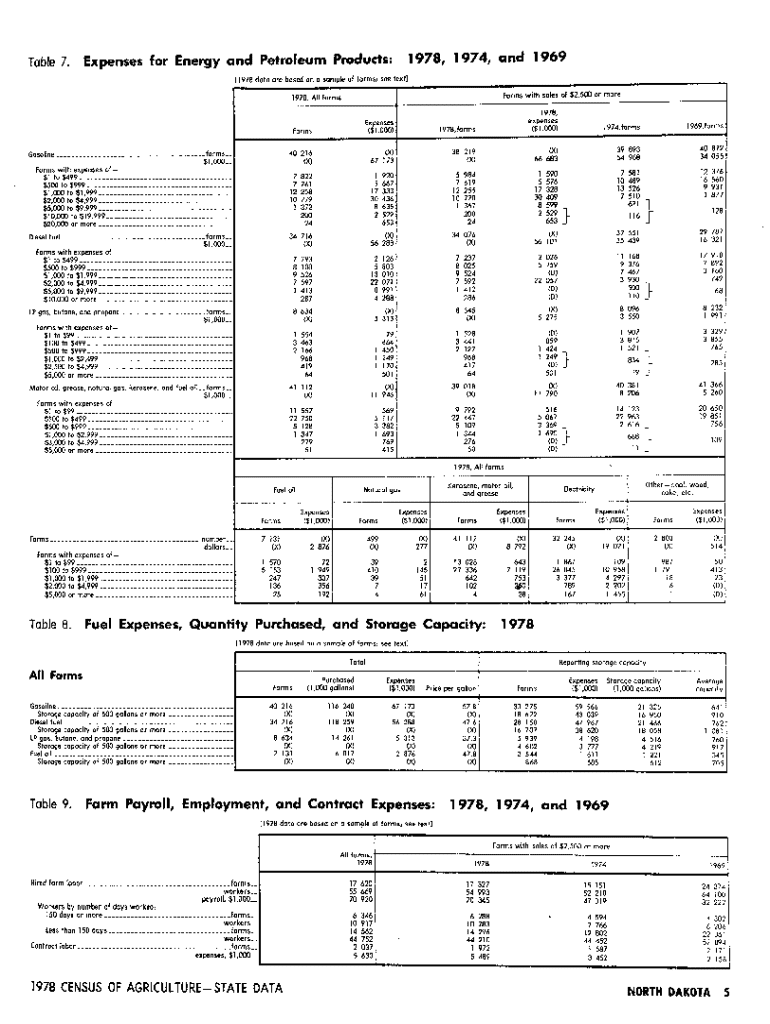 Table 7.1978, 1974, and 1969Expenses for Energy and Petroleum Products:11978 doto ore based on a sample of forms see text] Farms with soles of $2,500 or more1978, All forms1978, expensesExpensesGasoline