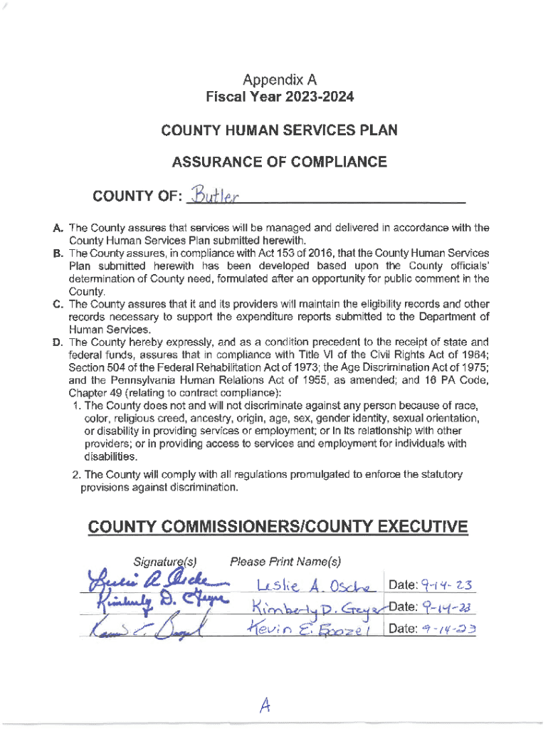 This document outlines the planning, priorities, and funding allocations for human services within Butler County for the fiscal year 2023-2024. It includes processes for public engagement, integration of services for mental health, substance use disorder, housing, and other community needs.