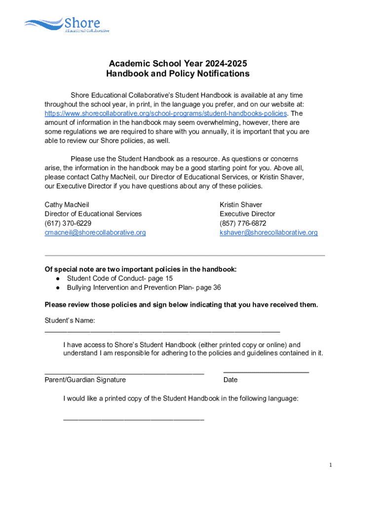 Get the free Shore Educational Collaborative Student Handbook 2024-2025
