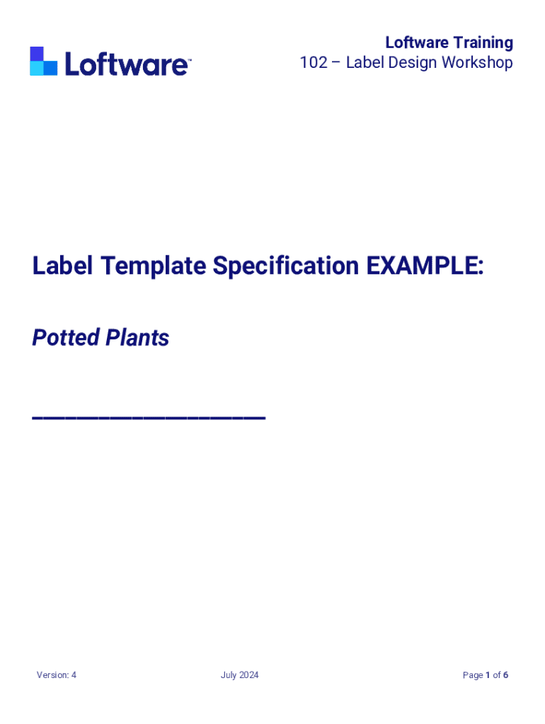 This document provides guidelines and specifications for designing label templates, specifically for a workshop focusing on labels for potted plants. It outlines the structure, content, and dynamics of the label, including static and dynamic objects, barcode specifications, and storage preferences.