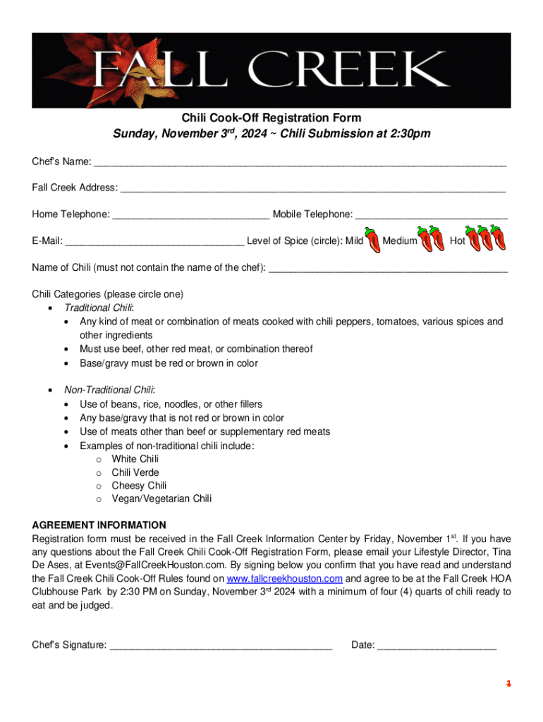 Fill out your chili cook-off registration form online with pdfFiller!