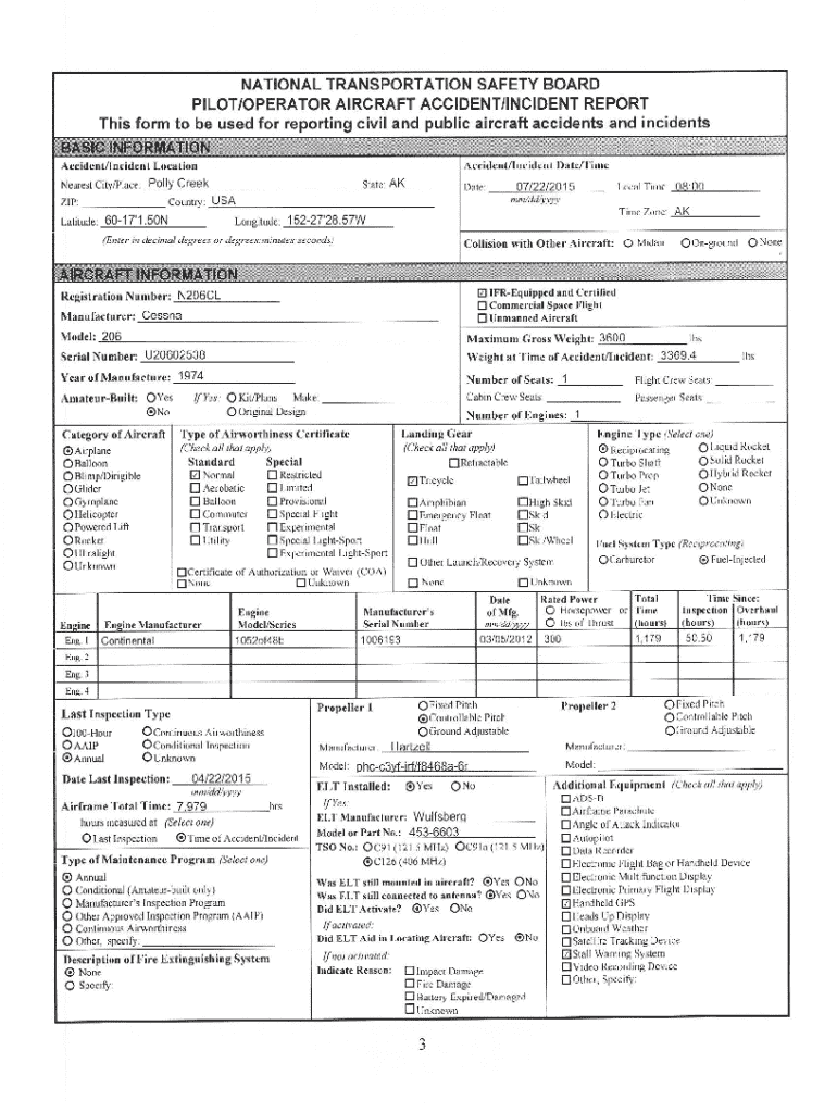 NATIONAL TRANSPORTATION SAFETY BOARD PILOT/OPERATOR AIRCRAFT ACCIDENT/INCIDENT REPORT This form to be used for reporting civil and public aircraft accidents and incidents BASIC INFORMATION Accid ent/I