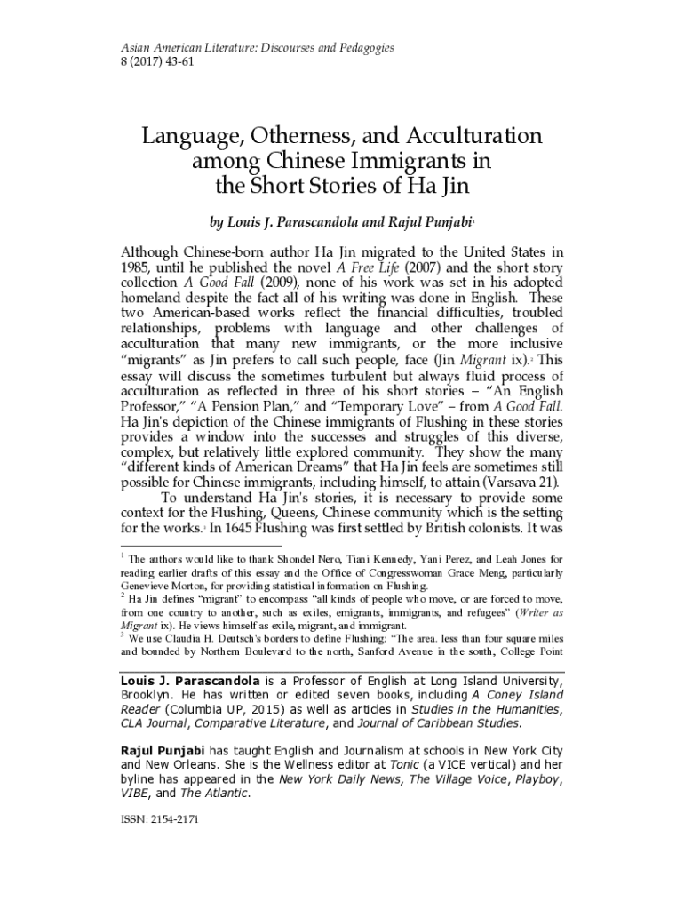 Get the free Language, Immigration and Acculturation in the Short Stories of Ha Jin. Article subm...