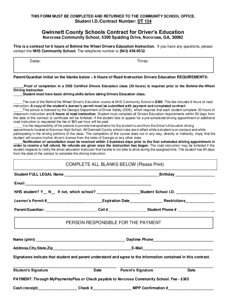 Get the free Gwinnett County Schools Driver's Education Contract