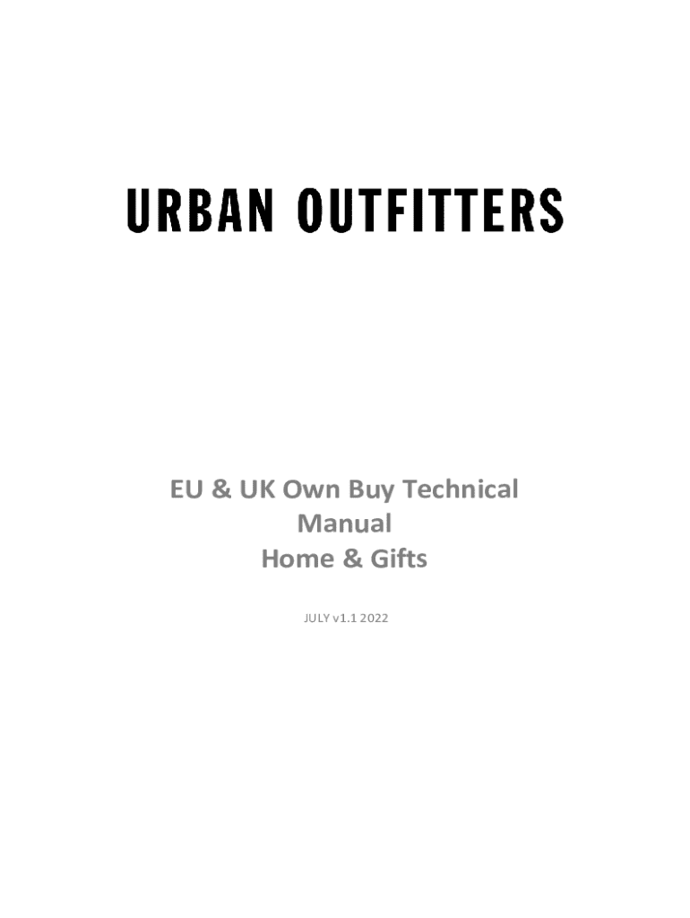 This technical manual provides guidelines on care symbols, labelling for softlines and hardlines, testing tables, and assessment criteria for home and gift products sold in the EU and UK. It includes regulations regarding textiles, electricals, furniture, and compliance with safety standards and environmental regulations.