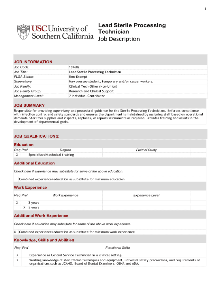 Get the free Lead Sterile Processing Technician