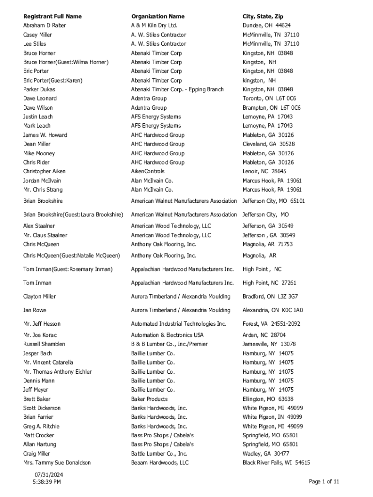 Registrant Full NameOrganization NameCity, State, ZipAbraham D RaberA & M Kiln Dry Ltd.Dundee, OH 44624Casey MillerA. W. Stiles ContractorMcMinnville, TN 37110Lee StilesA. W. Stiles ContractorMcMinnville,