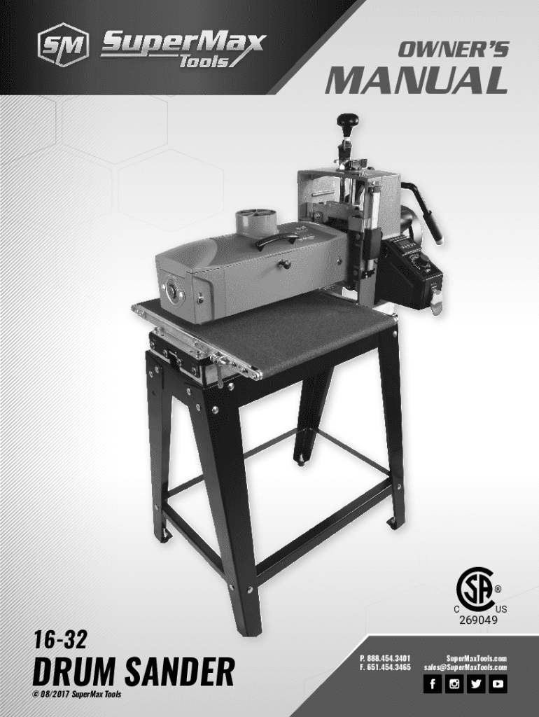 OWNERSMANUAL C1632DRUM SANDER 08/2017 SuperMax ToolsUS269049P. 888.454.3401 F. 651.454.3465SuperMaxTools.com sales@SuperMaxTools.comCONGRATULATIONSSuperMax Tools takes pride in our products and stands