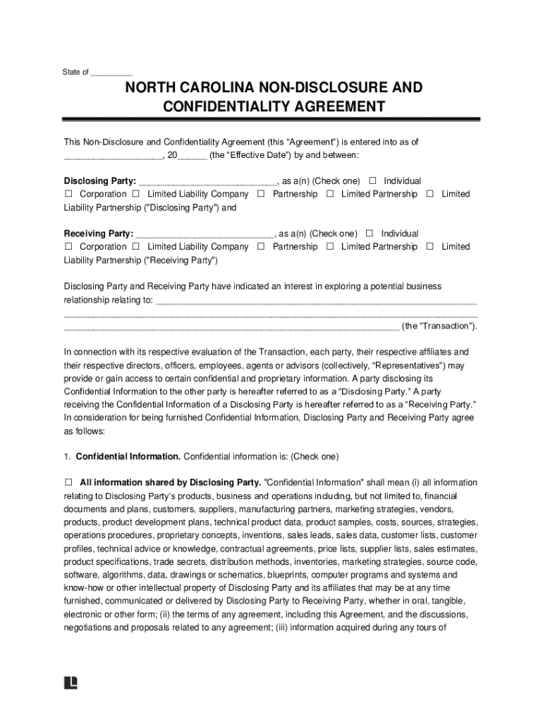 Get the free North Carolina Non-Disclosure Agreement Template