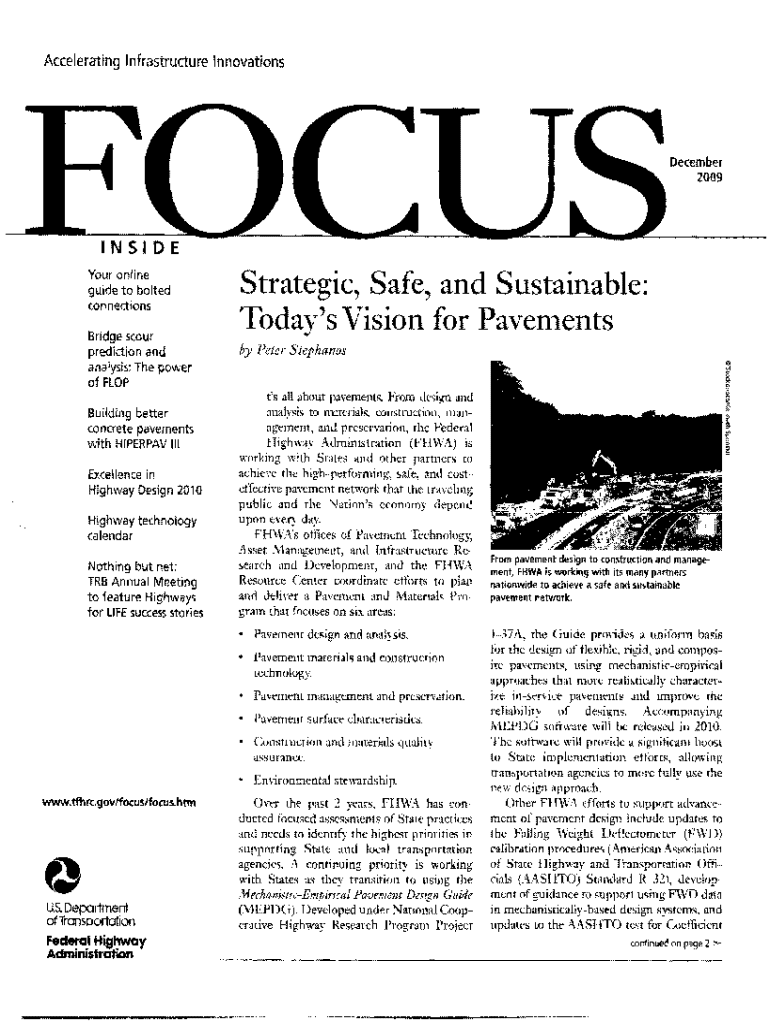 Accelerating Infrastructure InnovationsDecember 2009INSIDE Your online guide to bolted connections Bridge scour prediction and analysis: The power of FLOP Building better concrete pavements with HIPERPAV