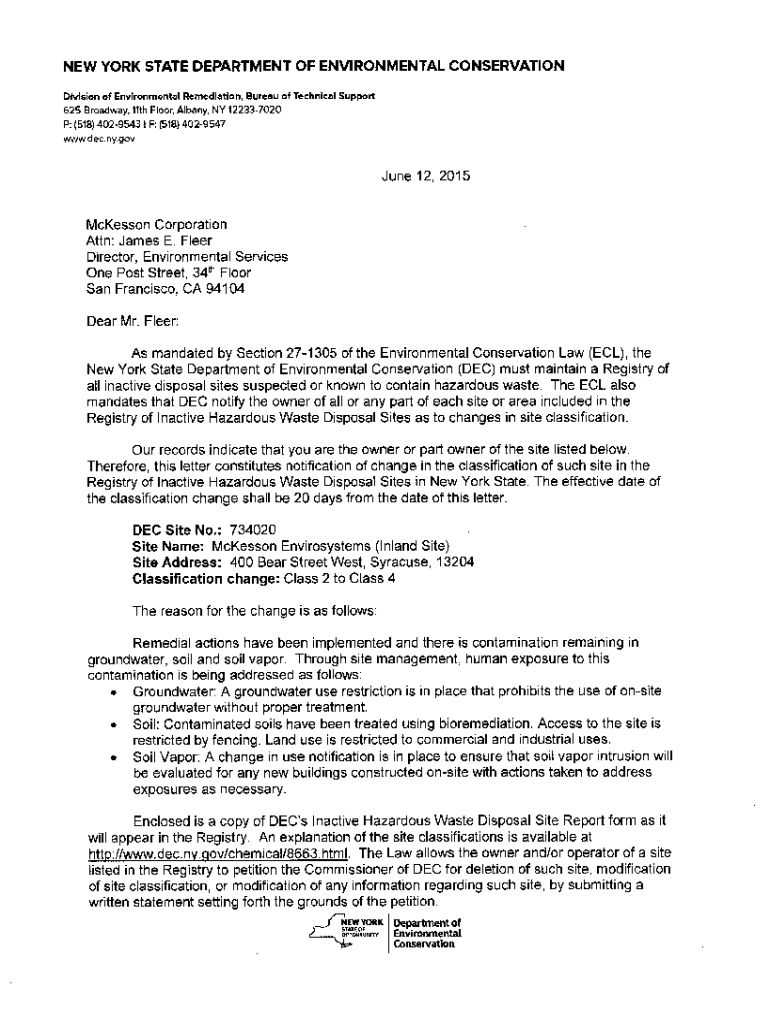 NEW YORK STATE DEPARTMENT OF ENVIRONMENTAL CONSERVATION Division of Environmental Remediation, Bureau of Technical Support 625 Broadway, 11th Floor, Albany, NY 122337020 P: (518) 4029543 I F: (518)