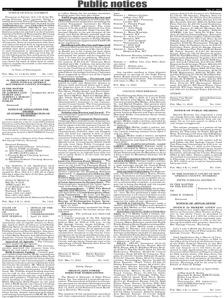 Fill out your public notices - wyoming online with pdfFiller!