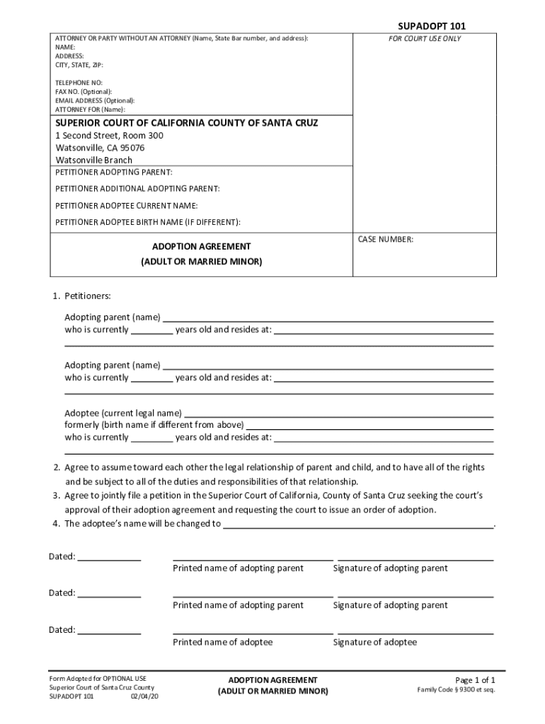 CA SUPADOPT 101 - County of Santa Cruz 2020-2026 free printable template