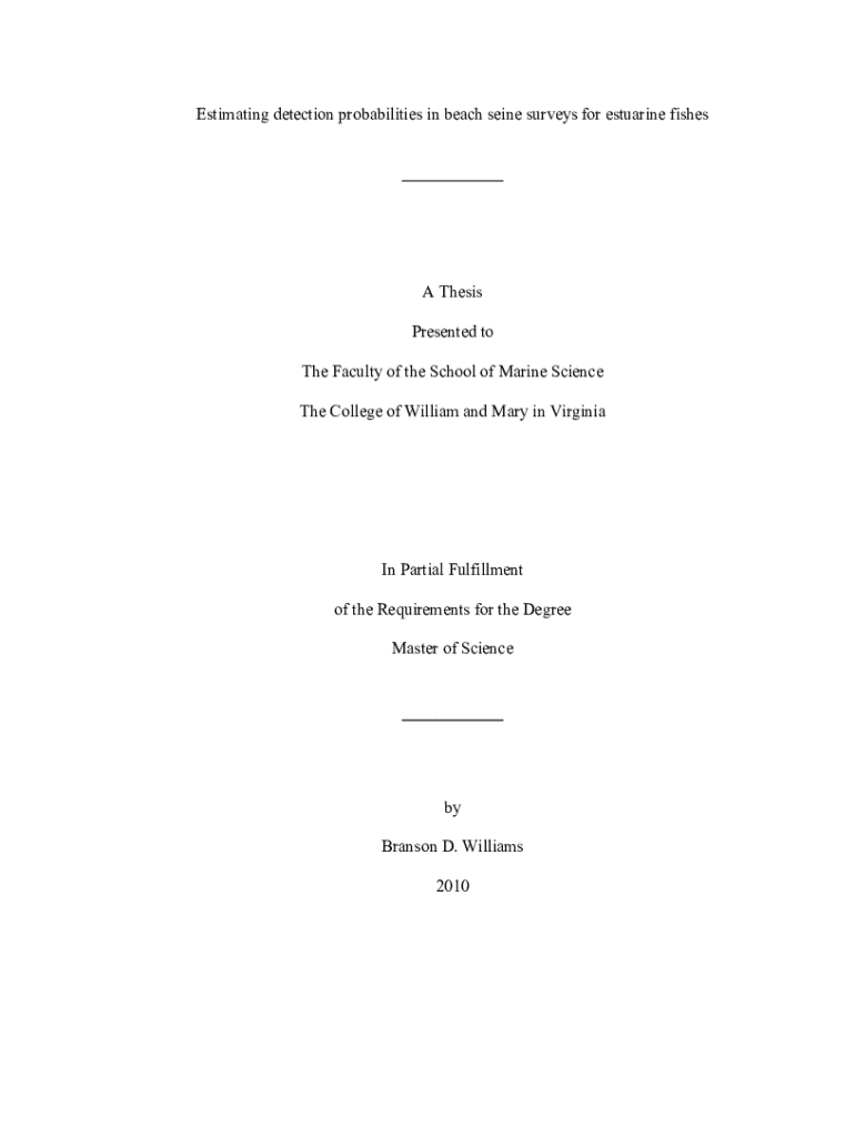 Get the free Estimating Detection Probabilities in Beach Seine Surveys for Estuarine Fishes