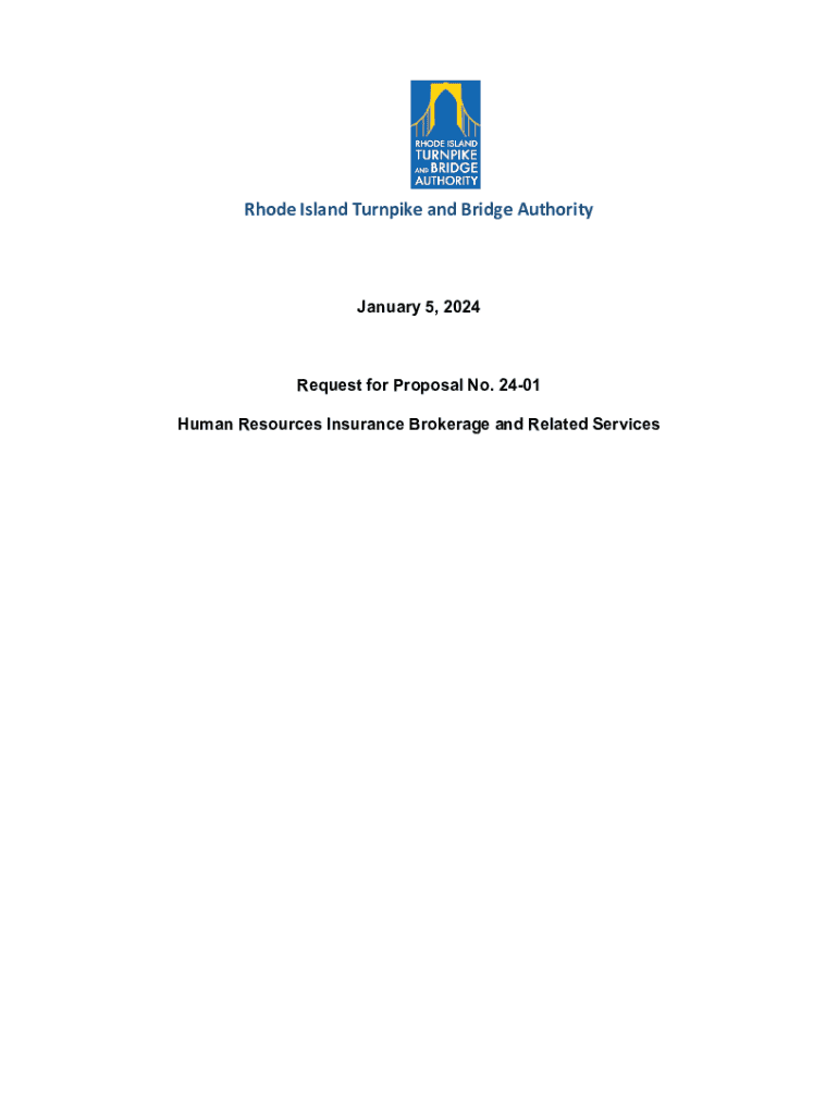 Rhode Island Turnpike and Bridge AuthorityJanuary 5, 2024Request for Proposal No. 2401 Human Resources Insurance Brokerage and Related ServicesINTRODUCTION The Rhode Island Turnpike & Bridge Authority