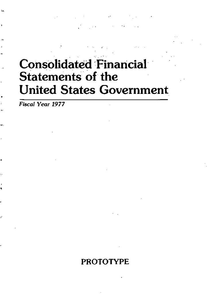 . j\'\'I\'...\'.\'Consolidated Financial . Statements of the United States Government .\'Fiscal Year 1977 ...._. \',\'\'PROTOTYPEADVISORY COMMITTEE on FEDERAL CONSOLIDATED FINANCIAL STATEMENTS The